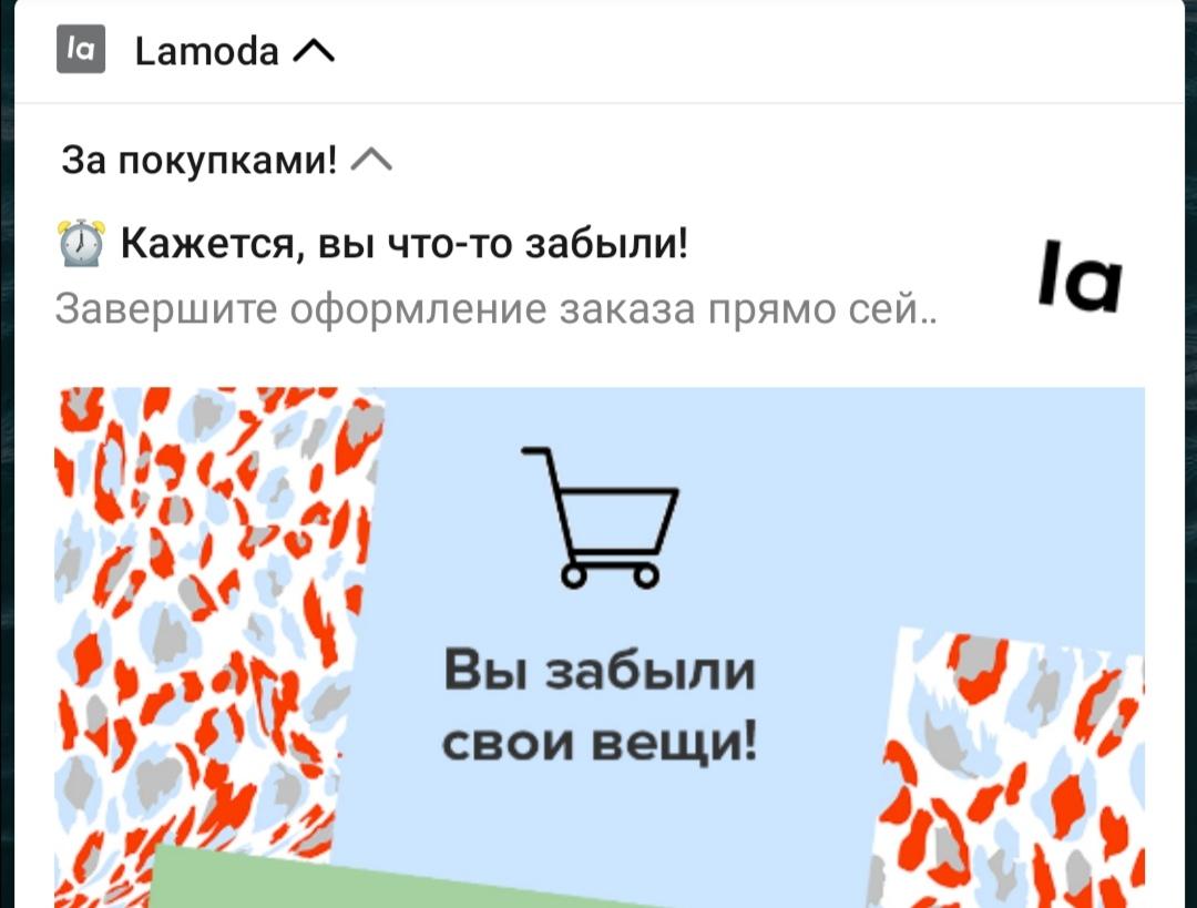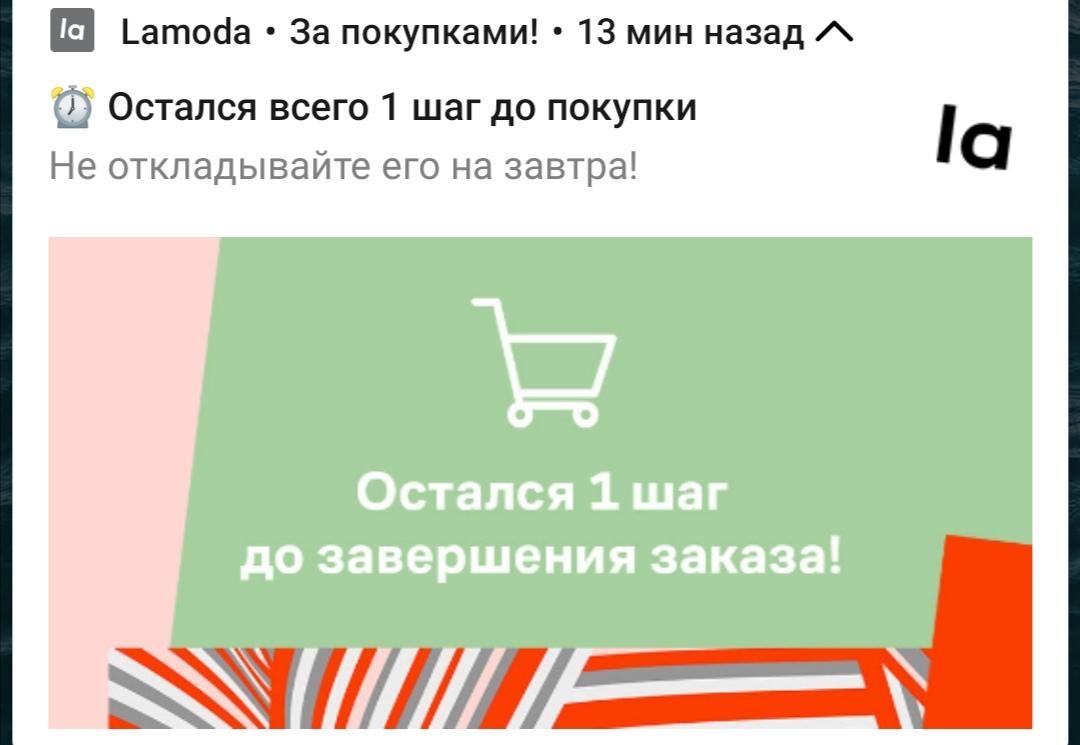 1. Push с напоминанием о незаконченной покупке через два часа.