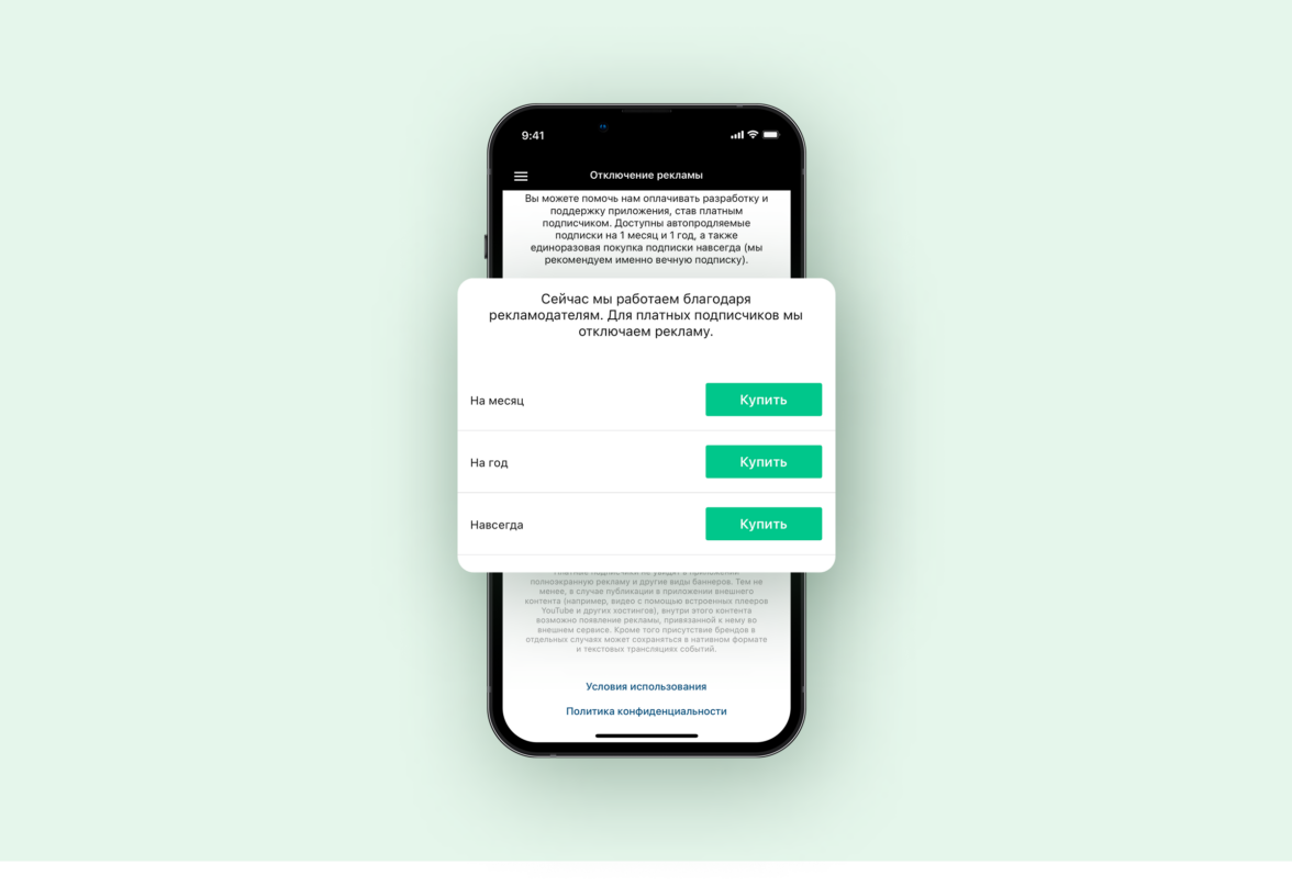 Ещё один способ монетизировать такие приложения — убрать рекламу за отдельную плату. Таким образом, дать пользователю выбор: либо оплатить и не видеть объявления, либо продолжить пользоваться бесплатной версией.