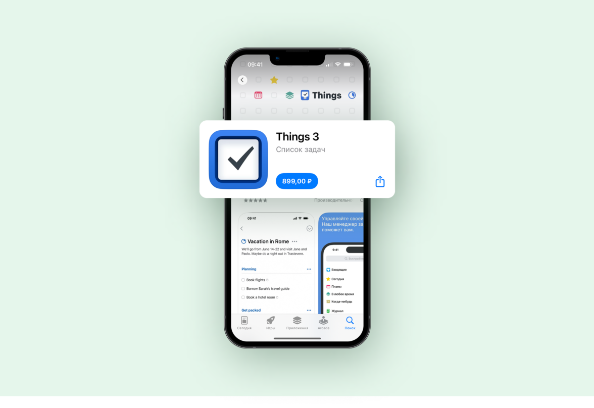 Платная загрузка хорошо работает для нишевых профессиональных инструментов или игр с уникальной механикой. Например, сервис для организации личных и рабочих дел Things требует единоразовой оплаты в App Store.
