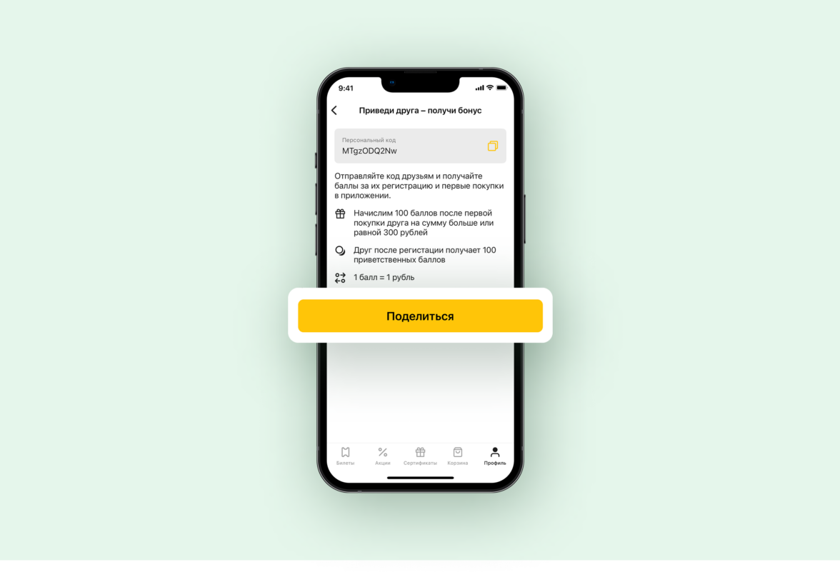 Пользователь привлекает новых клиентов и получает за это вознаграждение — доступ к платным возможностям, либо другой бонус. Например, в приложении Kassir.ru — популярном сервисе по продаже билетов на мероприятия — при регистрации нового пользователя можно указать реферальный код. Это даёт бонусы и новому пользователю и тому, чей код был использован при регистрации.