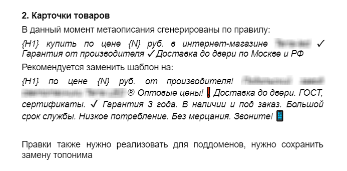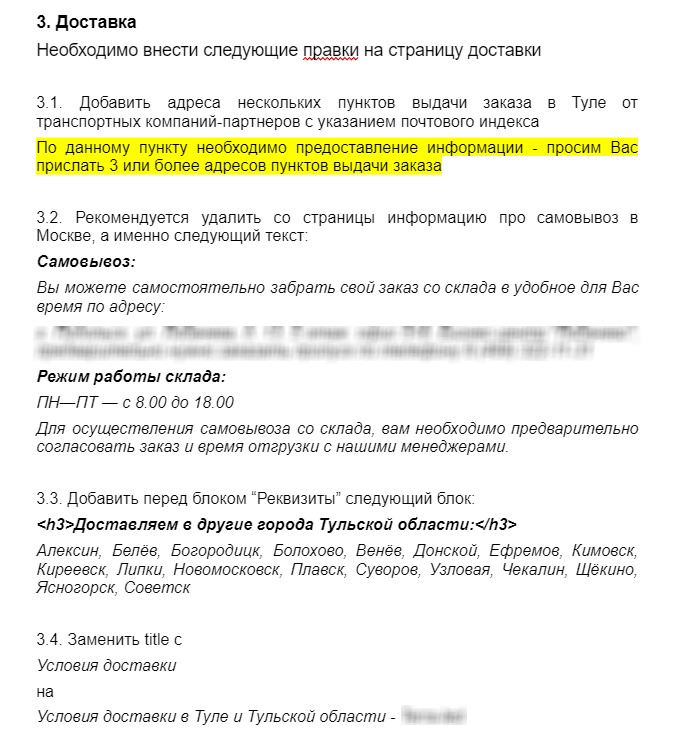 Провели работы для улучшения видимости поддоменов для городов-миллионников — добавили региональные контактные данные пунктов выдачи заказов ТК, топонимы в контент. Вот выдержка из рекомендаций для поддомена Тулы: