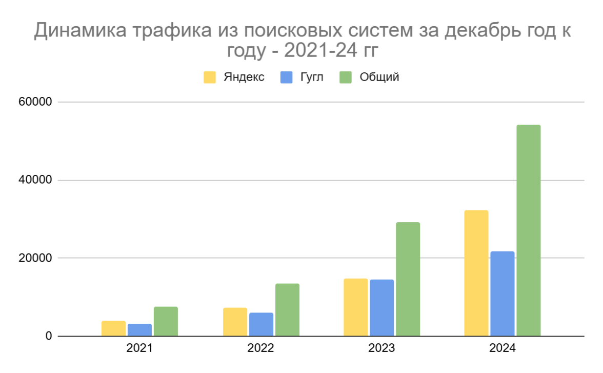 В декабре 2024 нам удалось добиться мощного прорыва по трафику — год к году он вырос в 7,2 раза:
