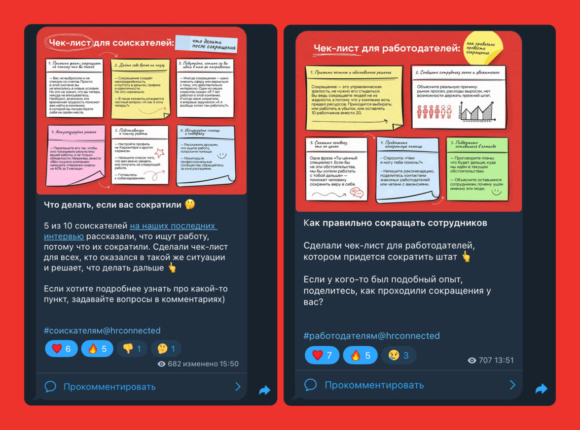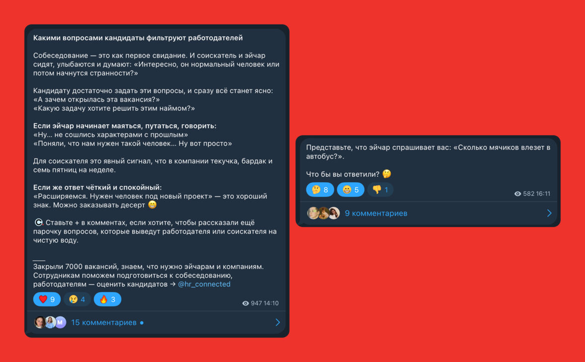 Попытка сделать канал интересным и работодателям, и соискателям провалилась. Лучше фокус на одной аудитории с понятным позиционированием. В общем-то, база, но мы подумали: а вдруг мы просто уже зашоренные, надо попробовать.