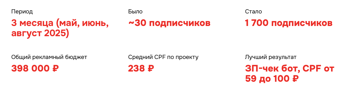 1 700 подписчиков за три месяца — не рекорд рынка. Но для нишевого B2B/B2C-канала с нуля с небольшими бюджетами — хороший результат. А главное — мы с командой знаем, как это повторить и кратно приумножить на бóльших бюджетах.