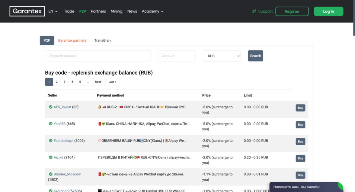 После зачисления средств на счет альтернативной биржи необходимо выбрать надежного партнера для обмена криптовалюты на фиатные деньги.