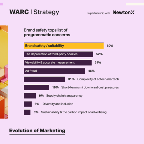 Специалисты на стороне мировых рекламодателей, опрошенные Всемирным центром исследования рекламы (WARC), назвали три главные проблемы programmatic-рекламы в 2024 году: неуверенность в безопасности бренда, фрод и непрозрачность