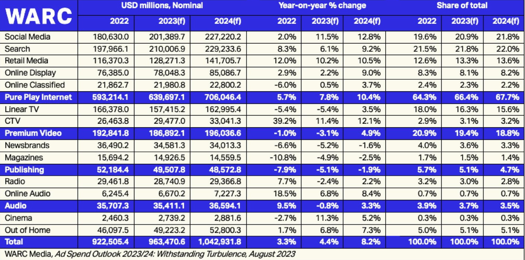 WARC: в 2024 году глобальный рекламный бюджет превысит $1 трлн