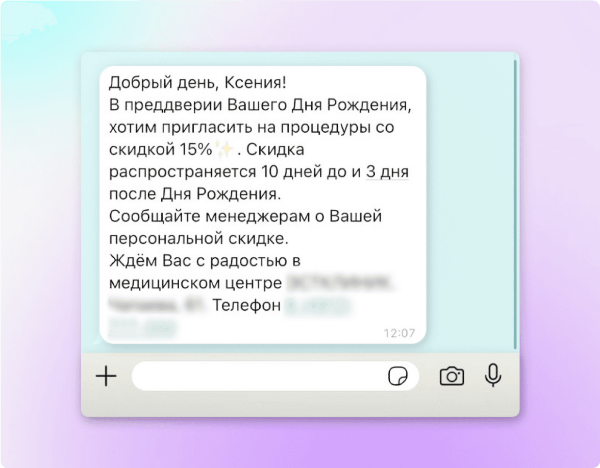 Пример персонализированного сообщения