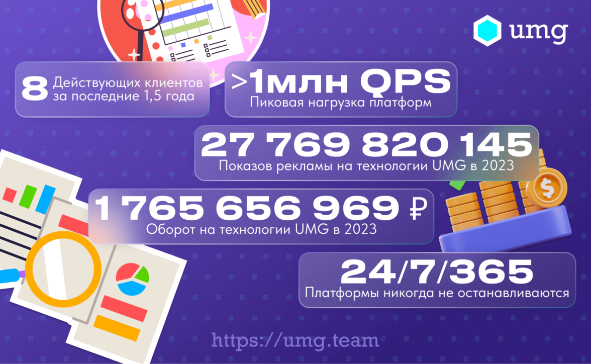 UMG накопил обширный опыт в предоставлении White Label решений для AdTech. Наши платформы доказали свою эффективность для множества клиентов, которые смогли адаптировать их под свои нужды и успешно выйти на рынок программной рекламы. Благодаря таким решениям, компании снизили затраты и сократили время на запуск новых сервисов. Мы обеспечиваем строгую конфиденциальность, соблюдая соглашения о неразглашении (NDA), и поэтому не раскрываем названия компаний, с которыми сотрудничаем. Однако, обобщенная статистика говорит сама за себя — наши клиенты демонстрируют высокие показатели роста и рентабельности.