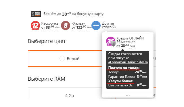 Суть работ. Ярлыки стали важным инструментом для управления поведением пользователей на сайте. Они наглядно отображают различные способы покупки товаров, варианты оплаты, ежемесячные платежи для рассрочки или кредита, а также информацию о дополнительных гарантиях и их стоимости. Кроме того, эти ярлыки помогают пользователям быстро понять, что товар доступен в рассрочку, что заметно стимулирует продажи.