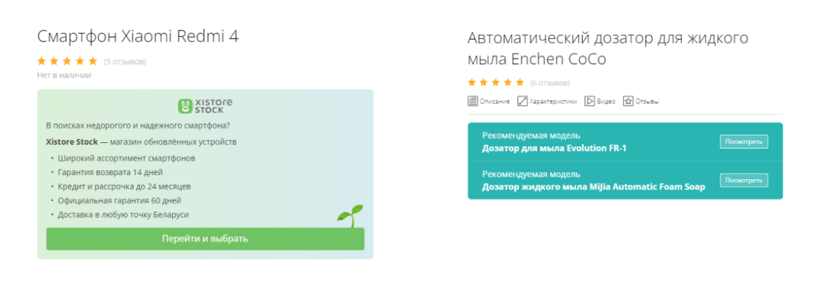Суть работ. У клиента есть отдельный сайт для продажи БУ телефонов. Мы настроили алгоритм, который автоматически добавляет в карточки старых моделей ссылку на сайт с БУ товарами или на актуальные модели. Например, в карточках смартфонов Xiaomi теперь отображается ссылка на сайт с БУ товарами, если старые модели есть в наличии. Для других товаров алгоритм добавляет блок с актуальными моделями, которые можно приобрести прямо сейчас.