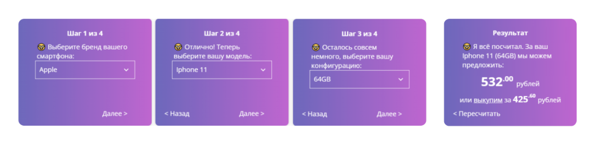 Задача. Автоматизировать расчет стоимости старых устройств и предоставить клиентам возможность получения этой информации за несколько кликов.
