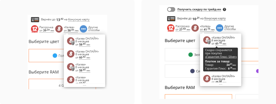 Результат. После внедрения этого функционала пользователи стали лучше разбираться в финансовых аспектах своих покупок. Это привело к росту доверия к компании и увеличению вероятности завершения покупок, что в свою очередь повысило конверсию и количество довольных клиентов.