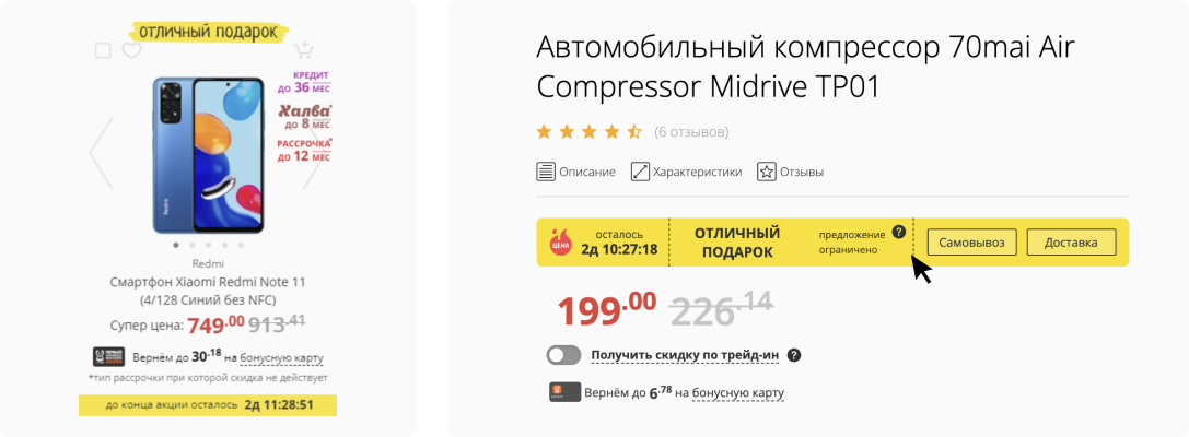 Суть работ. Мы реализовали автоматизированную систему, которая позволяет отображать промокоды, акционные блоки и ярлыки прямо в карточках товаров. Эти блоки, ярко оформленные и снабженные таймерами, привлекают внимание пользователей и автоматически рассчитывают акционные цены. В отличие от многих других магазинов, где такие элементы создаются вручную, в Xistore все происходит автоматически.