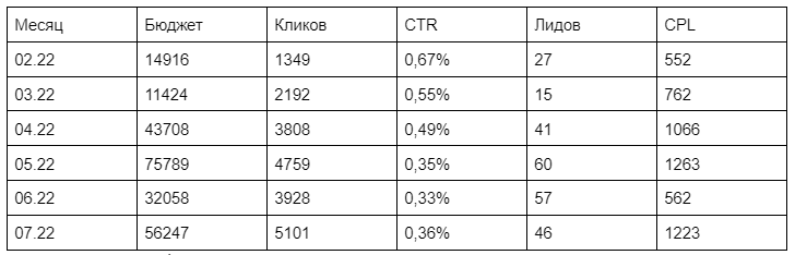 В июле мы получили уже 50 лидов против 10 лидов в мае при меньшем бюджете: