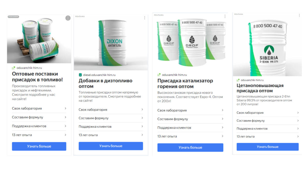 Яндекс.Директ для производства и оптовой торговли топливными присадками и нефтехимией