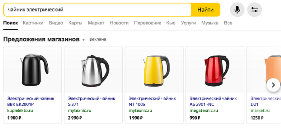 Преимущество поиска по товарам заключается в том, что это бесплатный инструмент, который доступен всем владельцам интернет-магазинов. А для того, чтобы им воспользоваться, не нужно совершать дополнительные настройки. Алгоритмы площадки автоматически собирают и обрабатывают данные от магазинов.