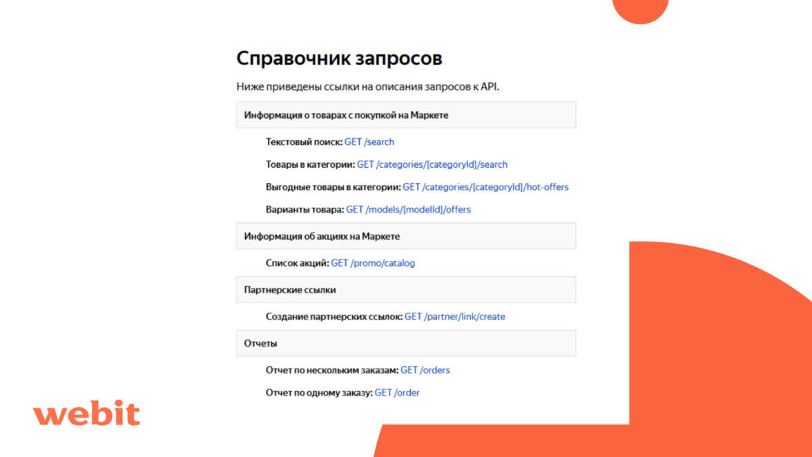 Хотите воспользоваться функциями API Яндекс.Маркет дистрибуции, но из-за скудного описания документации не можете реализовать свои задумки? Согласитесь, Яндекс.Маркет — хороший инструмент для монетизации, но количество официальных методов в API оставляет желать лучшего. Мы в Webit успешно решили самые востребованные задачи, используя незадокументированные возможности API Маркета, и рады помочь разобраться со всеми нюансами в этой статье.