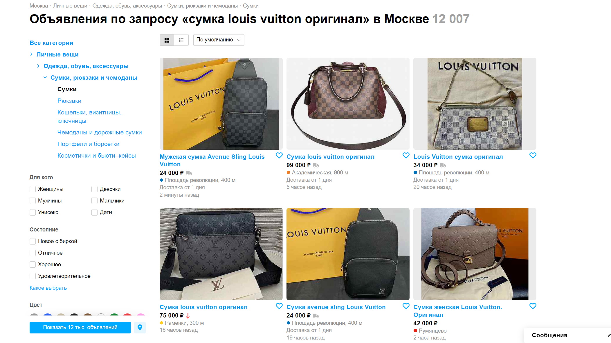 В России безусловным лидером в сегменте ресейл является доска объявлений «Авито»: там можно найти множество вещей от известных модных домов. Например, по запросу «сумка louis vuitton» на этой площадке в разделе «Сумки» было найдено более 27 тысяч предложений. При сужении запроса до «сумка louis vuitton оригинал» количество предложений снизилось до 12 тысяч. По этим объявлениям сложно понять, являются ли товары действительно оригинальными.