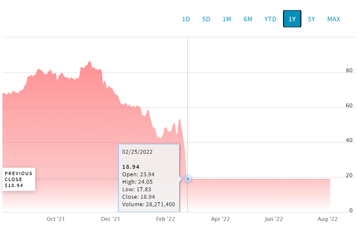 28 февраля нью-йоркская биржа NASDAQ остановила торговлю акциями компаний Ozon и «Яндекс». Акции Ozon обвалились на 33% до $11,6. Падение стоимости акций «Яндекса» составило 55%, его ценные бумаги на NASDAQ подешевели до $18,94 штуку.