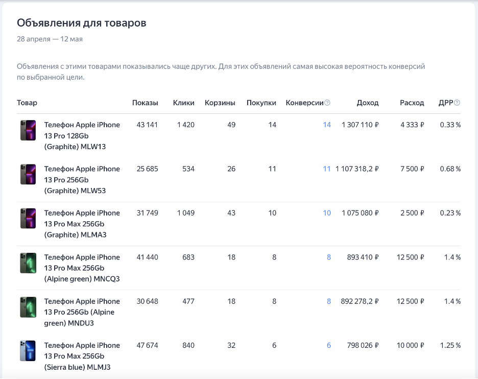 С итогами рекламной кампании можно будет ознакомиться на странице кампании в «Директе». Там появился новый блок «Товарная статистика». В блоке будут отображаться следующие данные: показы, клики, добавление в корзину, покупки, конверсии и доля рекламных расходов.