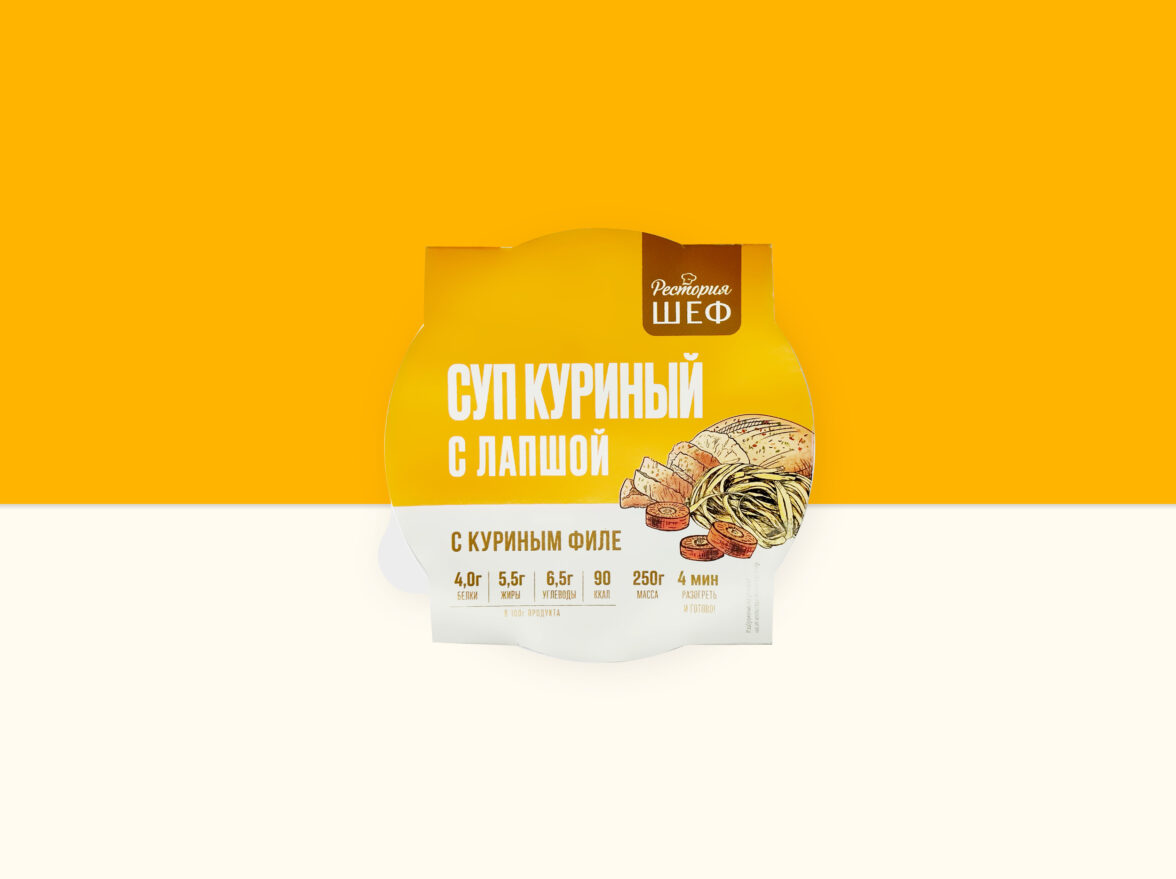 Бренд «Рестория Шеф» уже был представлен на полках «Пятёрочки» несколько лет. Однако после исследования выяснилось, что внешний вид упаковки всех товаров «Рестории Шеф» не слишком ярко выражает основные их качества — вкус, свежесть и удобство. Проще говоря, он оказался слишком нейтральный. И хотя бренд создавал общее впечатление тепла, уюта, домашней обстановки и меню в семейном ресторанчике, ему не хватало как эмоций, так и читаемости.