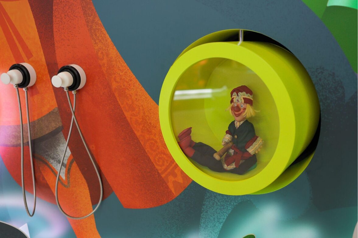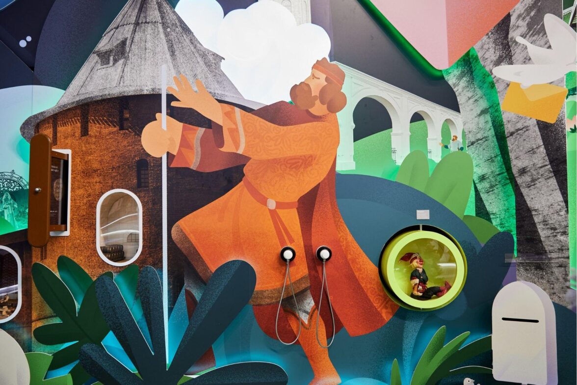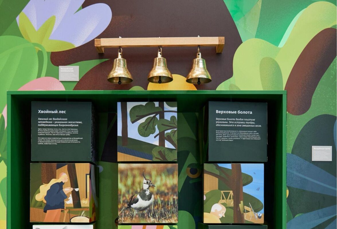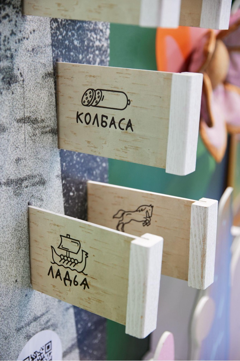 Мы продумали множество интерактивных элементов, чтобы погрузить гостей в путешествие по Новгородской области. Например, найти берестяные грамоты и разгадать задания аудиогида, позвонить в валдайский колокольчик или рассмотреть настоящего театрального петрушку, которого привезли в Москву прямиком из Великого Новгорода.