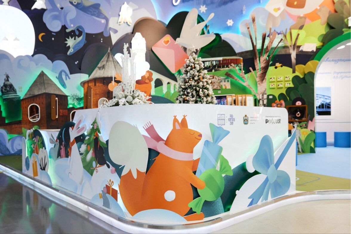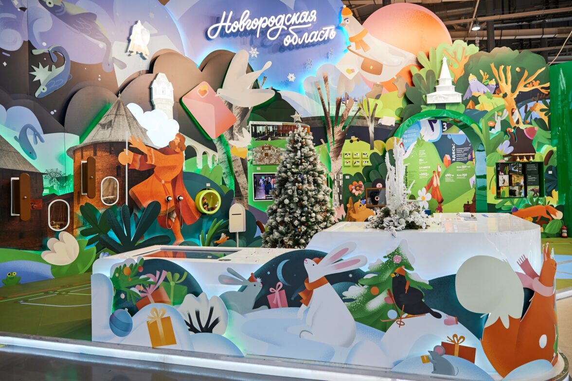 В течение выставки, по требованиям организаторов, экспоненты также должны были обновить концепции своих стендов. Чтобы изменения не ударили по бюджету региона, мы предложили не менять экспозицию целиком, а изменить только иллюстрацию с весенне-летней на зимнюю. Например, переодели персонажей в теплую одежду, надели на них шарфы и шапочки.