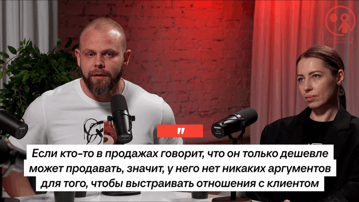 Демпинг — это непризнание собственных способностей трактовать цену и работать с клиентом. Если кто-то в продажах говорит, что он может продавать только дешевле, значит у него нет никаких аргументов для того, чтобы выстраивать отношения с клиентом.