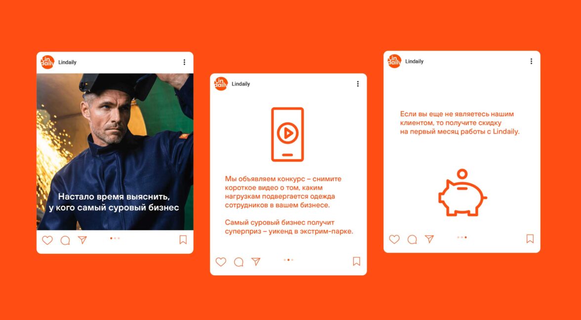 В клиентском портфеле Lindaily в России — более тридцати тысяч компаний из промышленности, строительства, медицины и других индустрий, где особенно важны условия труда. Мы разработали коммуникационные материалы, в которых говорим о ежедневных вызовах, с которыми сталкиваются шеф-повара, строители, сварщики, и рассказываем, как сервисы Lindaily делают их работу комфортнее.