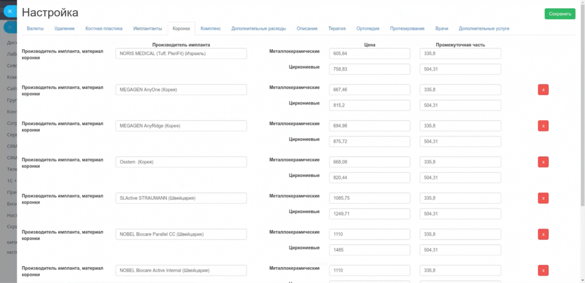 Механизм позволяет легко добавлять новые виды работ и услуг по мере их появления в клинике, что сокращает количество обращений к разработчикам и дает возможность настраивать систему самостоятельно.