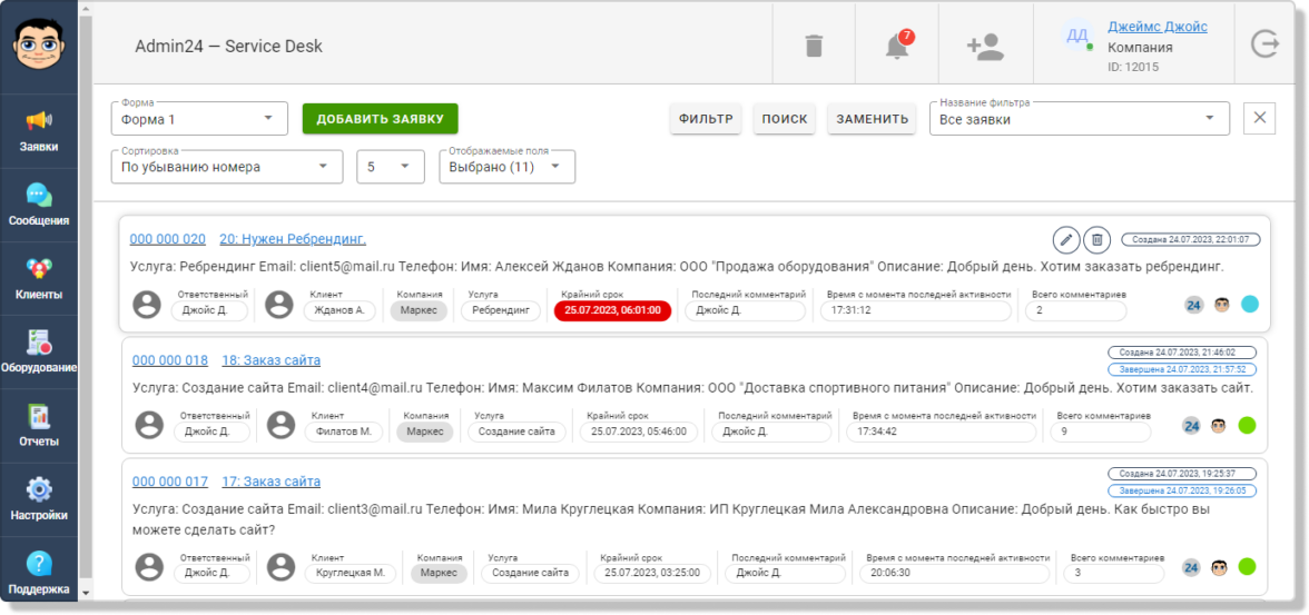 Прием заявок из разных источников. Можно получать заказы через почту, соцсети, мессенджеры. Это значит, что сотрудники могут работать с заявками в пределах одного рабочего пространства.