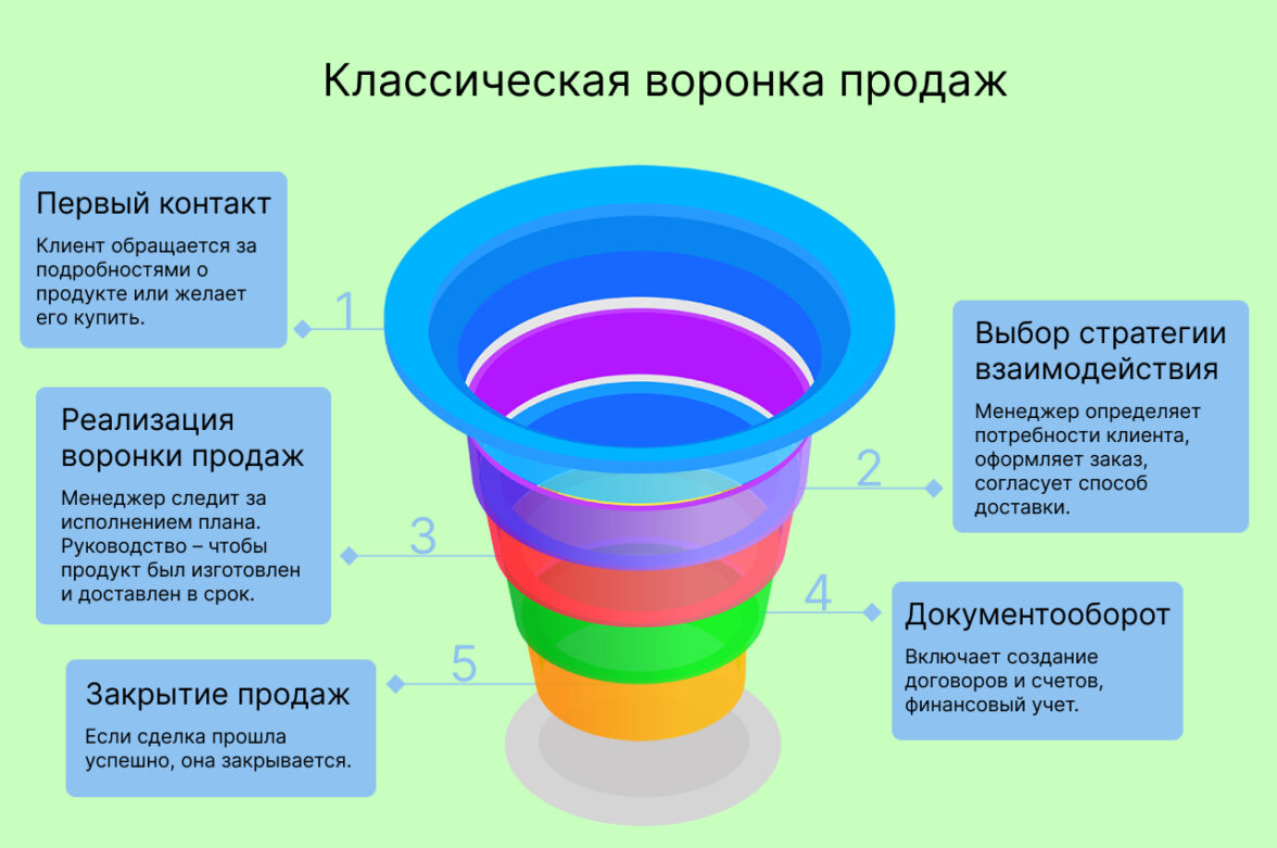 Так, CRM помогает автоматизировать все шаги по продаже товаров клиентам: от первого контакта до закрытия сделки. Это снижает риск, что на каком-то этапе воронки покупатель свернет с пути.