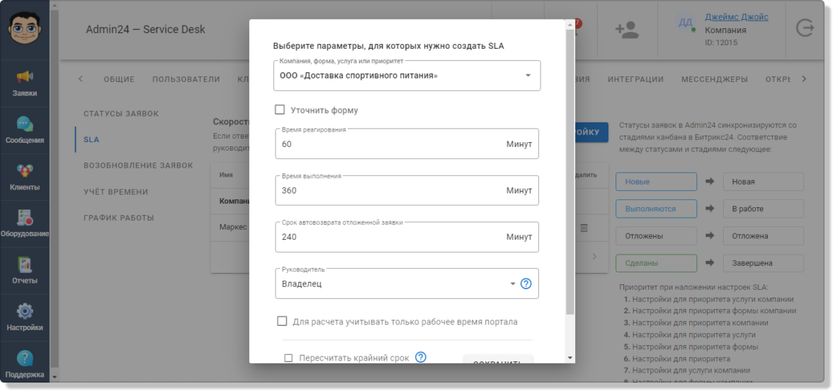 Контроль соблюдения SLA. В сервис-деске можно настроить, как быстро менеджеры должны реагировать на заявку и выполнять ее. Если сотрудник превысит указанное время, то руководитель получит уведомление. Все это помогает компаниям соблюдать соглашение об уровне обслуживания (SLA). Подробнее о нем мы рассказывали здесь.