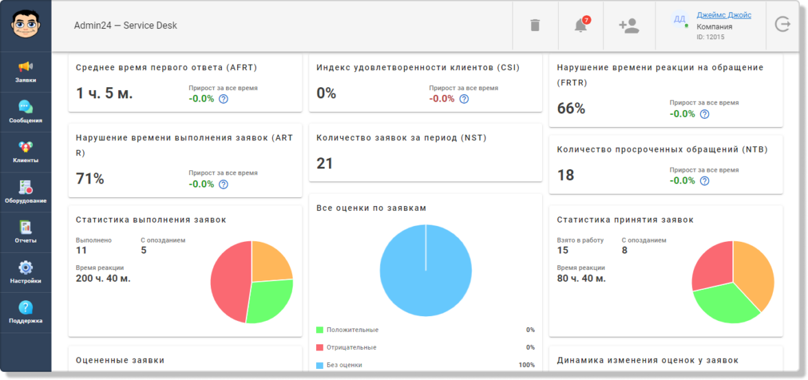 Анализ эффективности службы поддержки. В сервис-десках есть раздел с аналитикой. В нем можно просматривать, насколько быстро сотрудники реагируют на заявку и выполняют ее, а также довольны ли клиенты сервисом.