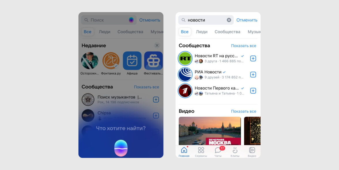 Социальные сети тоже могут использовать голосовую оптимизацию для улучшения взаимодействия пользователей с приложением. Например, голосовой поиск друзей, групп, музыки и видео.