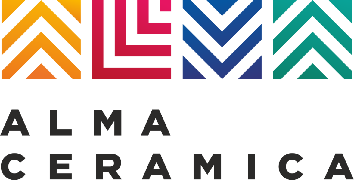 В логотипе появляются буквы ALMA, графически стилизованные под керамические плитки с рельефным дизайном. Название также дублируется в шрифтовом написании.