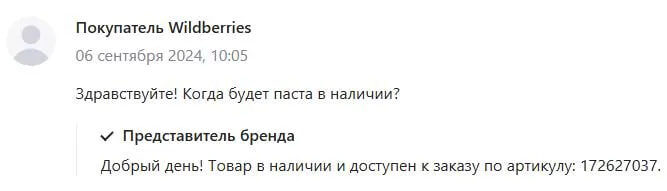 Пример вопроса и ответа магазина. Скриншот из каталога Wildberries