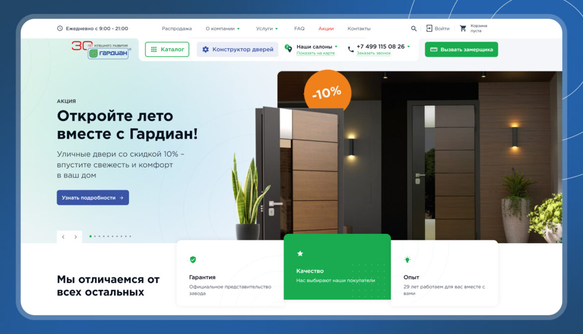 Сайт, который мы сделали для дилера дверей «Гардиан»