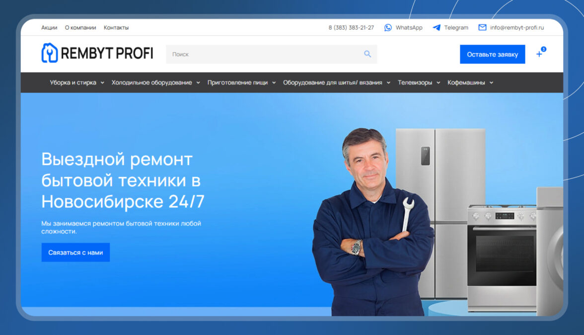 2. Используйте конструктор там, где не нужна сложная логика. Если ваш проект вполне укладывается в рамки типового функционала, зачем платить за изобретение велосипеда? Например, мы разработали многостраничный сайт для компании по ремонту техники на платформе Bilda — конструкторе, который позволяет легко управлять контентом без знаний программирования.