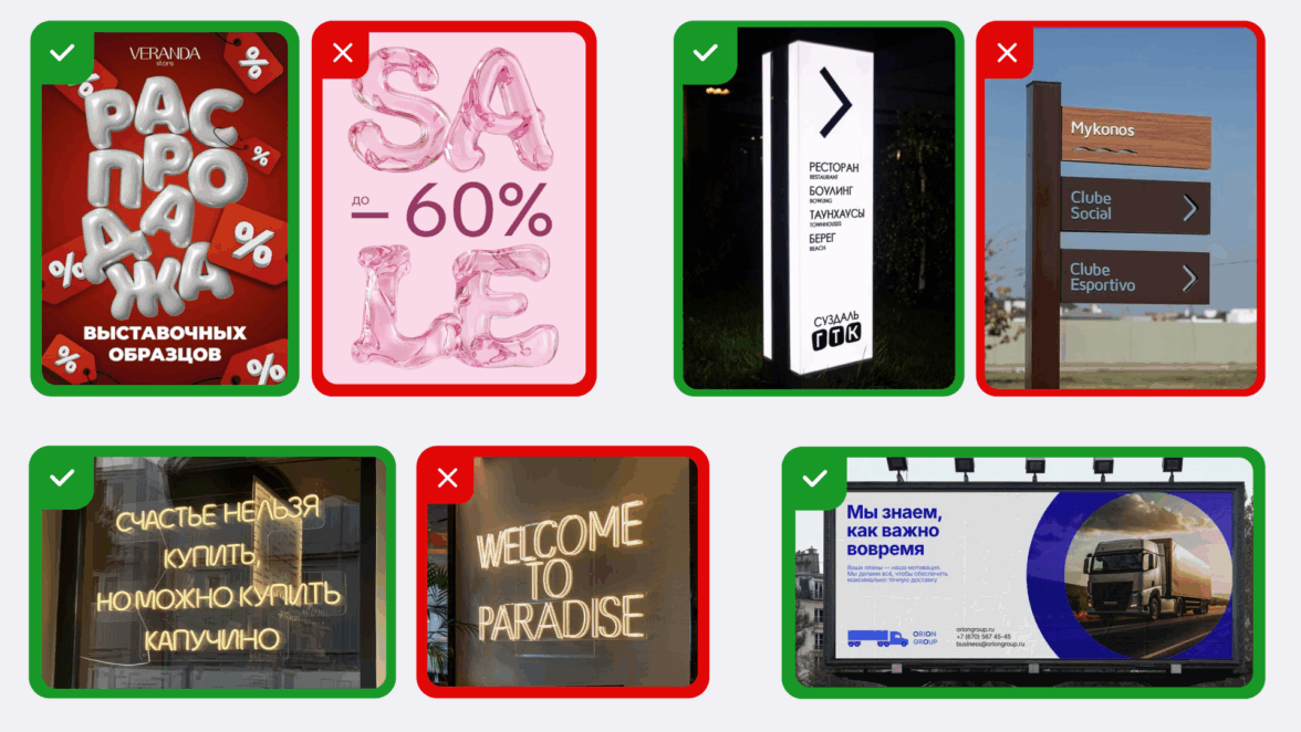 Просмотрите все носители: вывески на улице, меню, прайс-листы, таблички-указатели, сайт, приложения, соцсети и рекламу. Правила касаются любой публичной информации, доступной потребителям.