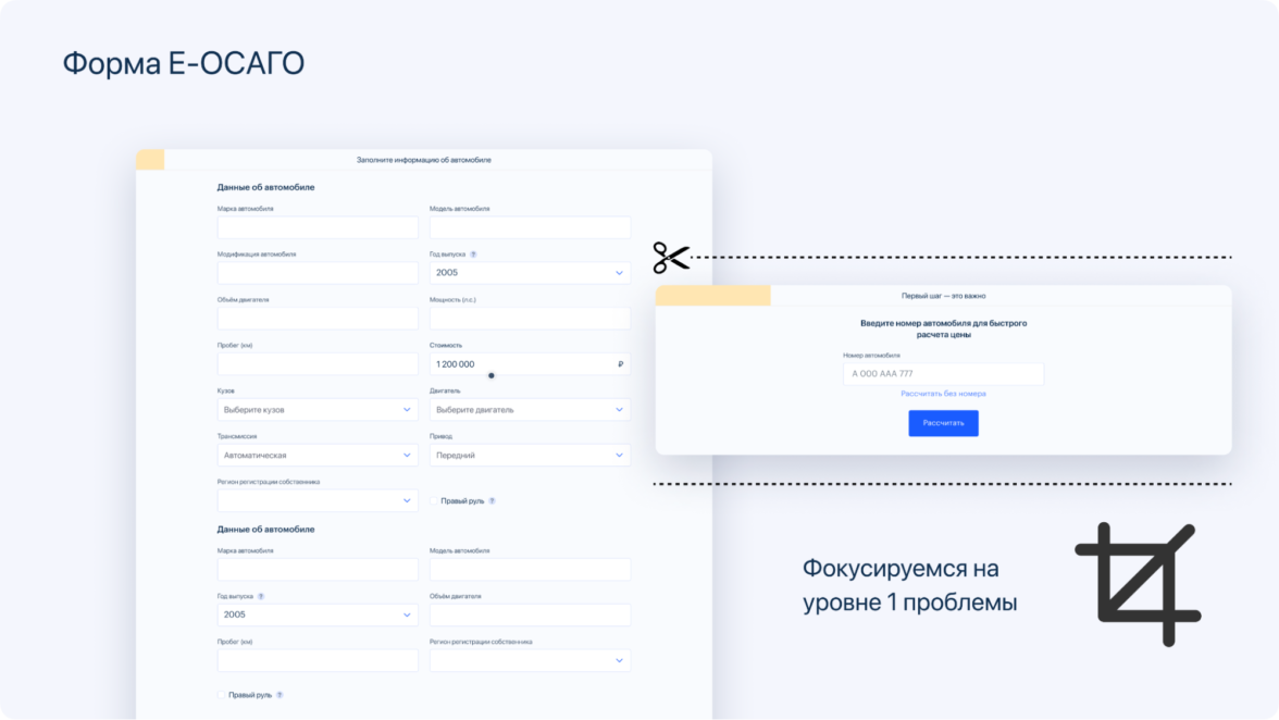В случае с формой заявки мы решили максимально упростить людям задачу. Внимание концентрируется на уровне одной проблемы — той, которую нужно решить сейчас.