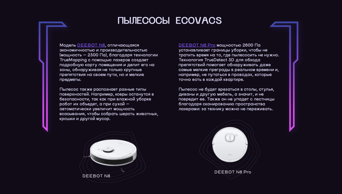 Компания ECOVACS Group специализируется на производстве и продаже электроники и робототехники. Штат компании насчитывает более 5000 сотрудников по всему миру; центральные офисы расположены в городах Кантон (США), Дюссельдорф (Германия) и Сучжоу (Китай). Продукция успешно реализуется на 6 континентах в более чем 31 стране, включая США, Канаду, Швейцарию, Францию, Японию, Чехию, Польшу, Малайзию и Австралию.