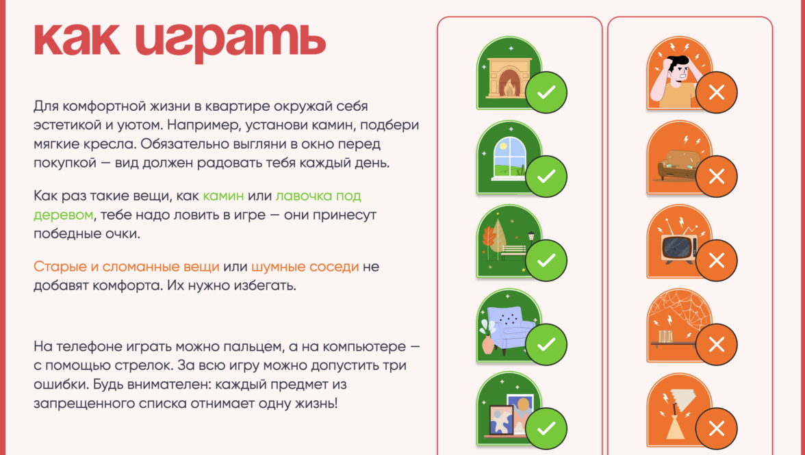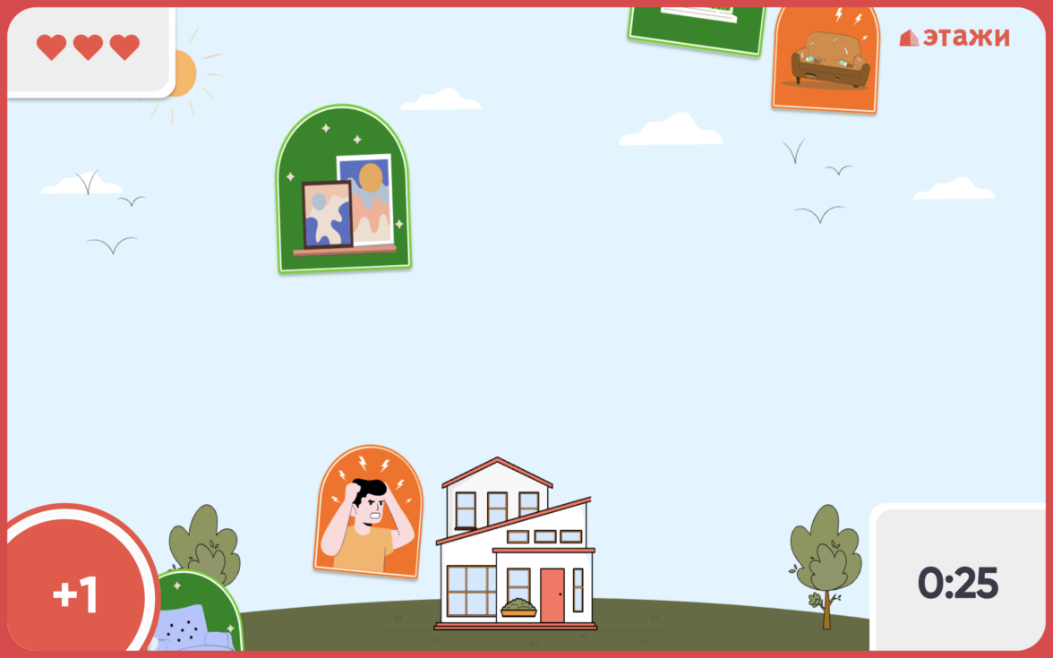 Задача: разработать спецпроект в формате игры. Создать ассоциацию: «Этажи» — ваш помощник в поиске и покупке жилья мечты. Кроме того, спецпроект должен был органично вписываться в рекламную кампанию «Этажей». Ее главный посыл — с «Этажами» возможно всё.