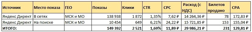 Этот кейс может быть полезен в первую очередь начинающим маркетологам, которые никогда не запускали рекламу на продвижение концертов и шоу. Более опытные коллеги найдут в нем бенчмарки по CPC, CTR, CPA. Если вам нужно составить структуру рекламного аккаунта или медиаплан по продвижению мероприятия, станет понятнее, с чего начинать.