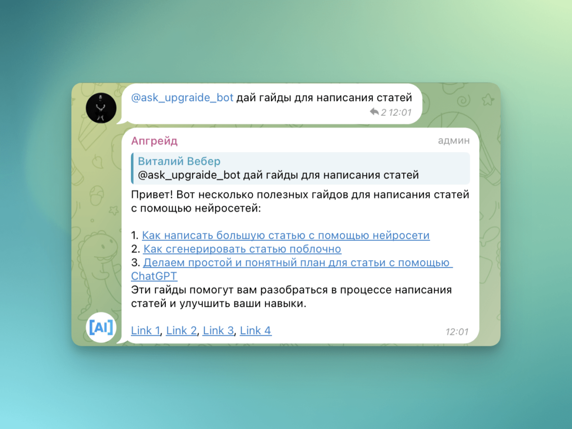Когда я анонсировал этого бота, ко мне в личку пришли 3 наших клиента и сказали, что им нужен такой же. Теперь мы в агентстве еще и нейросетевых ботов делаем, хаха. Обращайтесь, если тоже такое надо.