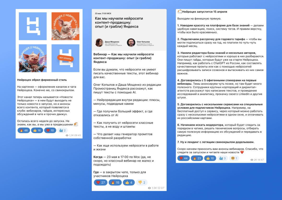По ходу подготовки мы активно рассказывали своей аудитории обо всем, что делаем — чтобы подогревать интерес к продукту. В итоге к запуску у нас в канале с анонсами собралось в районе 1000 человек.