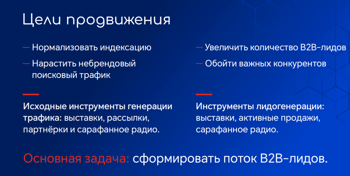 Изменение рыночной конъюнктуры создало потенциал для расширения бизнеса, но требовался качественный рост органического трафика. И вместе с клиентом мы стали работать над SEO-стратегией.