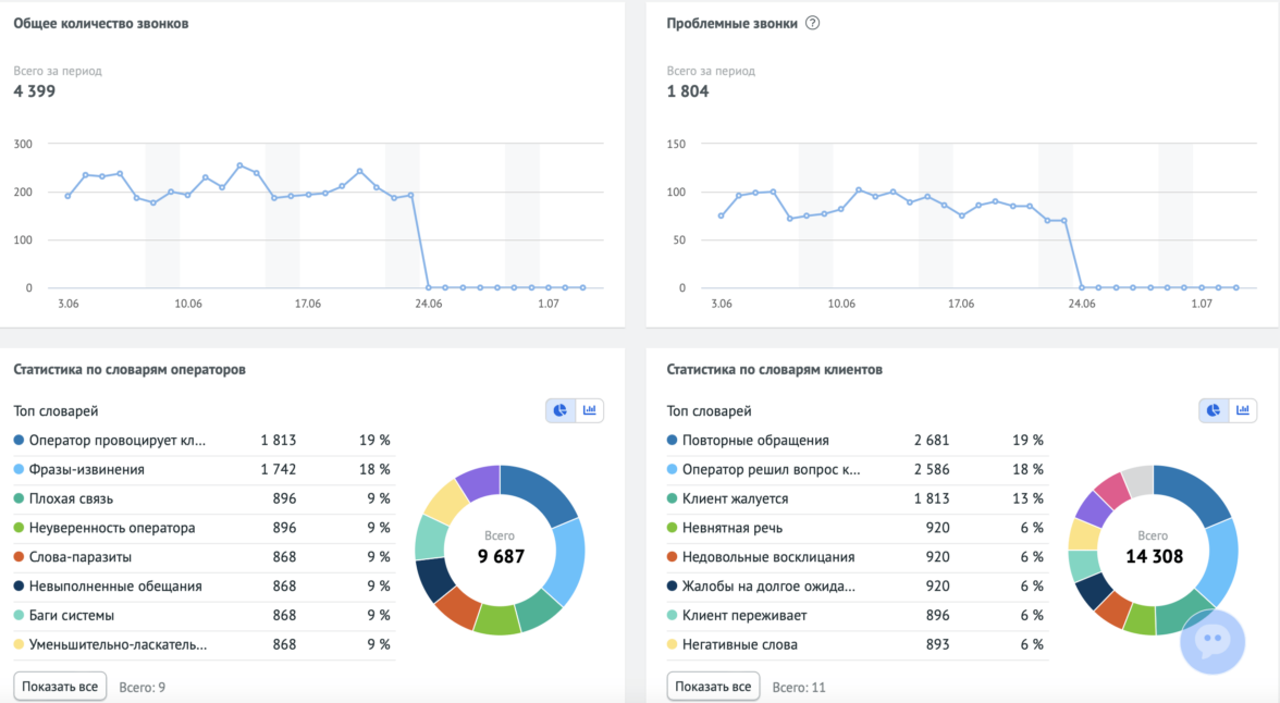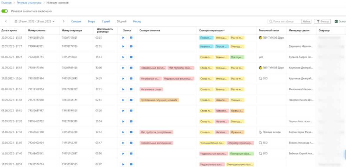 Лучше разобраться в работе сотрудников отдела продаж и понять, почему отваливаются лиды, поможет речевая аналитика. Сервис превращает запись разговора в текст и находит проблемные звонки. Например, выделяет те, где менеджер не использовал скрипт, отказывал в помощи, а клиент так и не решил проблему.