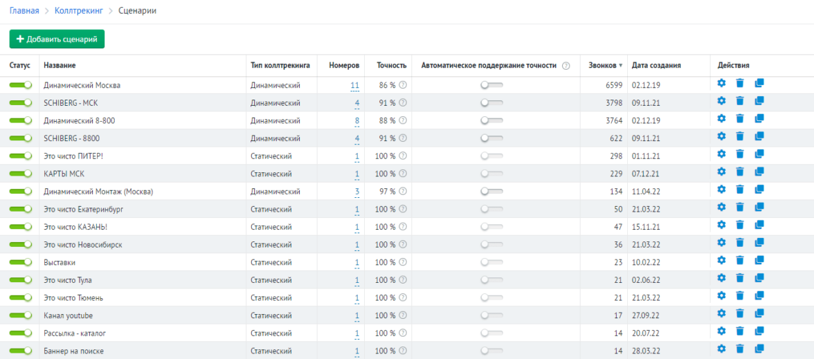 Подключили статистический и динамический кол-трекинг. Первый отслеживает заявки с выставок и других мероприятий — для этого сотрудники раздавали визитки и каталоги с номерами коллтрекинга. Второй показывает количество лидов с онлайн-рекламы.